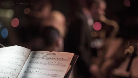 “It’s All About the Music”, photo by El Imagenero, taken at the Typhoon Restaurant this past summer (2012). He used a Nikon. That is the brilliant saxophonist Benn Clatworthy in the background with Aguabella Nuestra Era. In the foreground are charts (well, copies of the charts) from the late great Francisco Aguabella’s own book.