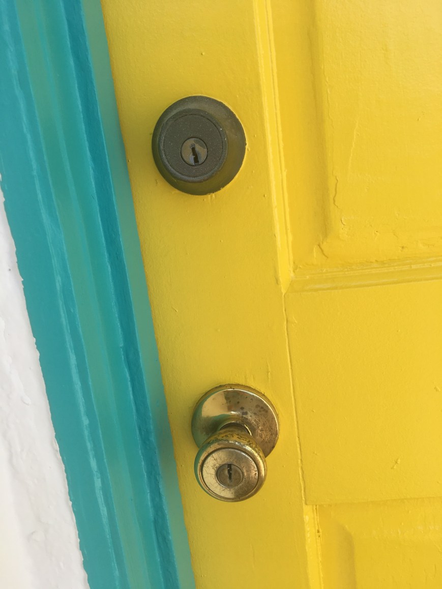 OK, the painters are done and gone. The place has been transformed from its faded Silver Lake glory into something, uh, different. The exterior is now lily white, much like me, with teal round the windows and doors. Teal. The front door itself is a sort of psychotic yellow, apparently visible from several space stations. I’m afraid to look at the back door. All in all it fits our new, bubbly personalities, bright and colorful and sunny, the kind of place that people in New Jersey look at and think Italians live there.